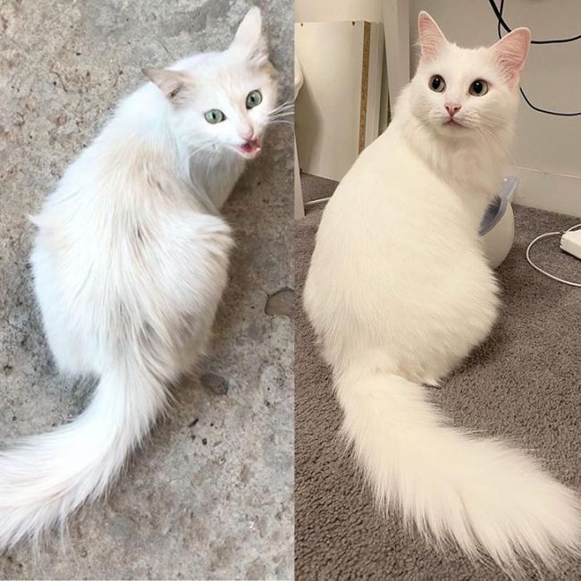 7. “ เราช่วยแมวที่อยู่ข้างถนนเอาไว้ และนี่คือภาพถ่ายก่อนและหลังเวลาผ่านไป 1 ปี ” เปลี่ยนไปอย่างกับคนละตัวเลย