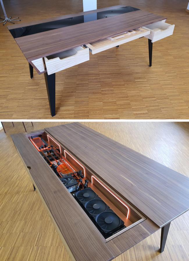 15. ”โต๊ะที่ฉันทำจากไม้วอลนัทโดยมีคอมพิวเตอร์อยู่ข้างใน” นี่แหละโต๊ะในฝันของเด็กเล่นเกมอย่างเรา
